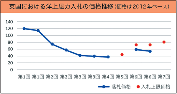 海域リース入札にも課題はある。19年に公表のラウンド4では、最終的にオプション料の提示金額が高い事業者から落札する制度を導入した。契約締結後開発着手までの3〜10年間、毎年オプション料を支払うものだ。21年2月の公表結果は、8GW全体で年間8億7900万ポンドと高額になった。業界団体は、ラウンド3の32GWからの対象容量の大幅減が競争激化を招いたと批判。オプション料による開発費用の増加が、将来のCfD入札価格に反映されれば、最終的に需要家の負担となる可能性がある。