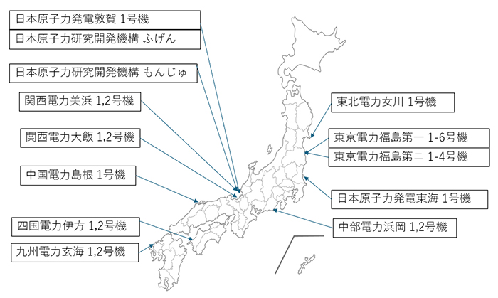 日本には、廃止を決定したものを含めて合計60基(商業用と研究開発用)の原子炉が存在し、そのうち廃止措置中あるいは廃止決定済みのものは27基、運転中または再稼働可能なものは33基である。建設中のものがこのほかに3基ある。図3に廃止措置中の原子力発電所を示す。